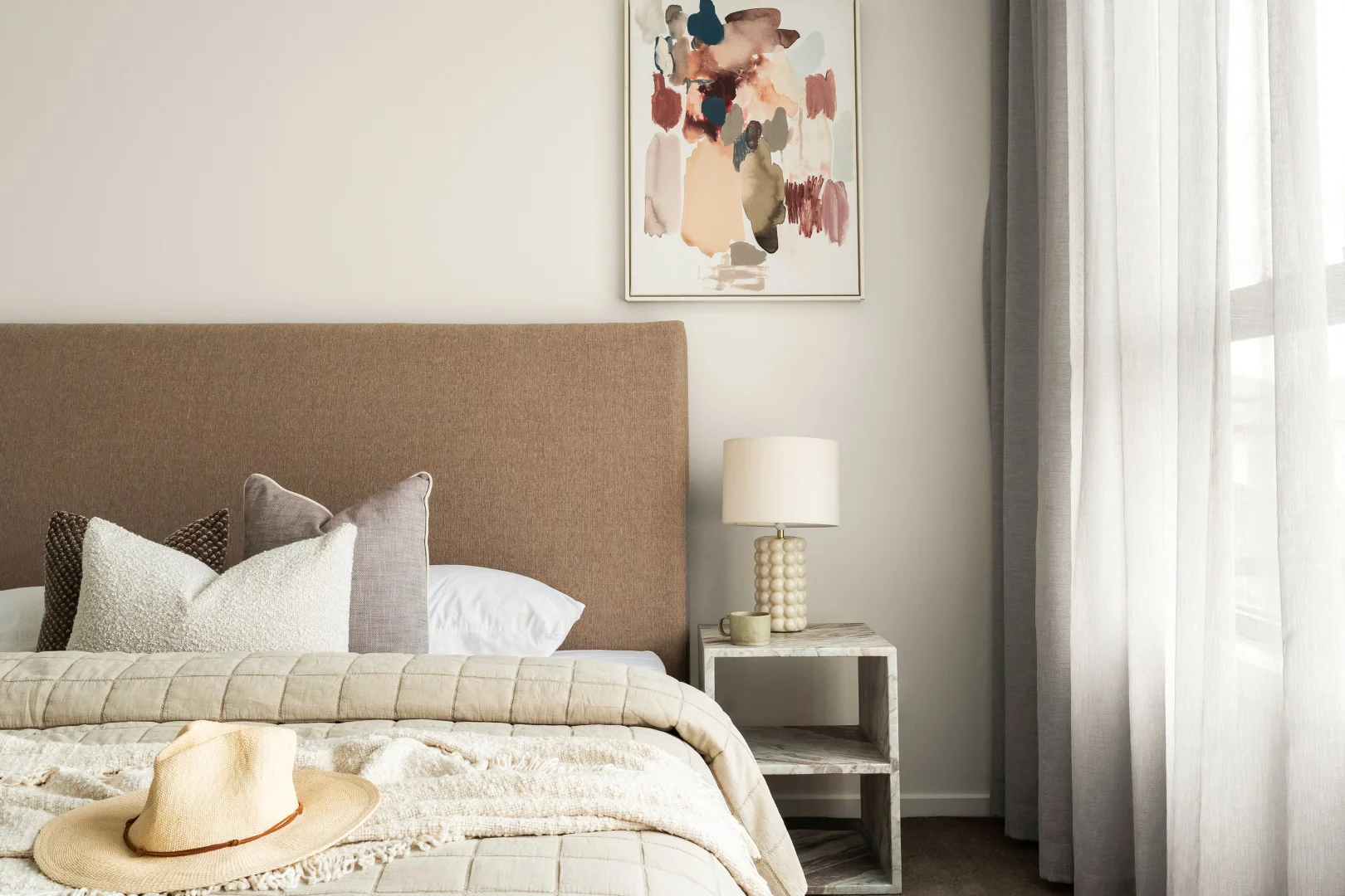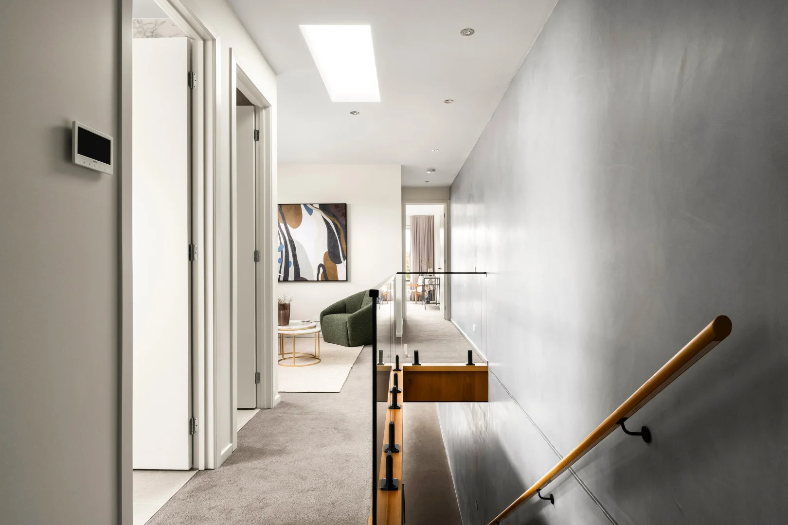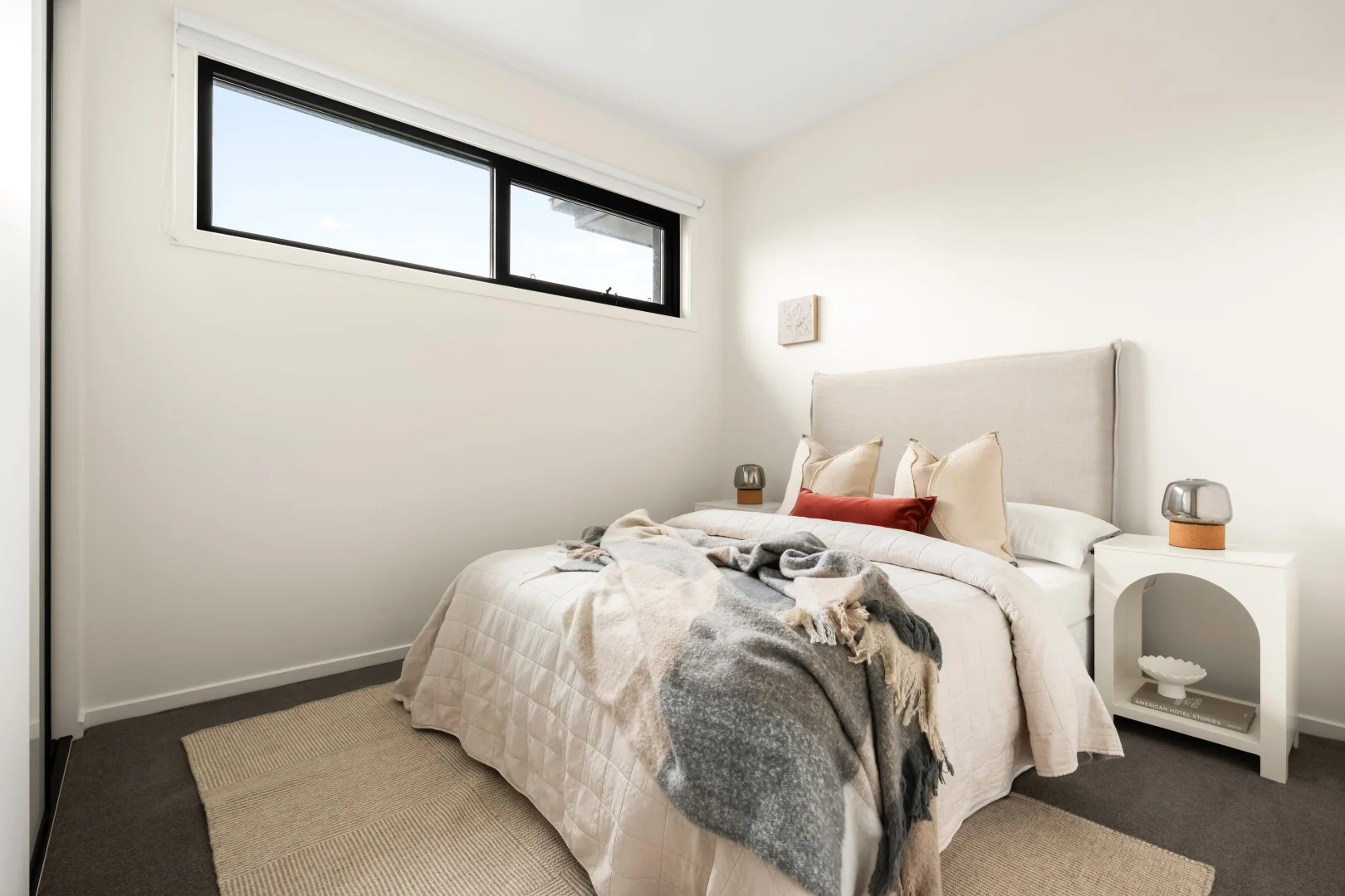 Our styling approach centred on complementing the elevated finishes while maintaining warmth and liveability for family buyers. Carefully selected furnishings helped soften the concrete elements, while layered textures and considered layouts enhanced flow across the generous living zones.