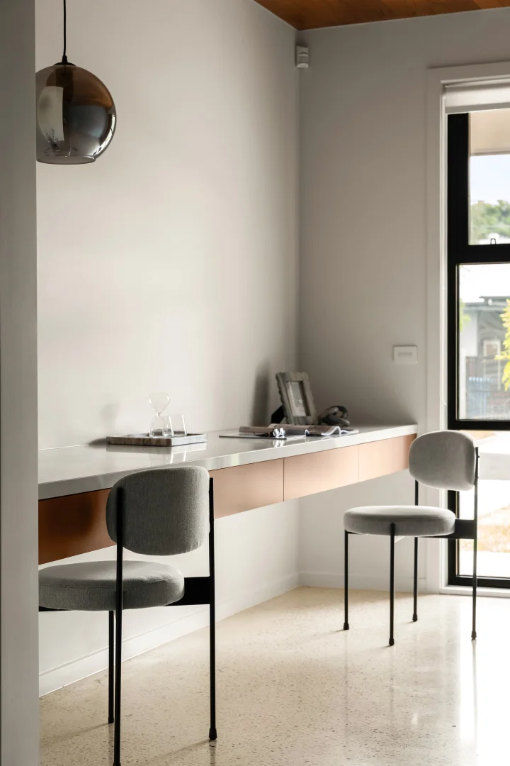 This Cheltenham property styling project focused on elevating a large family home defined by its polished concrete floors and striking timber-lined ceilings. These architectural features created a strong, contemporary foundation that we built upon to enhance the home’s sense of scale and sophistication.